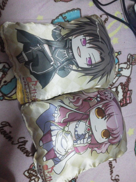 ついったのフォロワ様に影響されてこんなの作ってみたよーwこれね、両面同じ柄なの。つまりアルバロクッションとルルクッションに分裂させたの。かわいいよ!!満足!!!